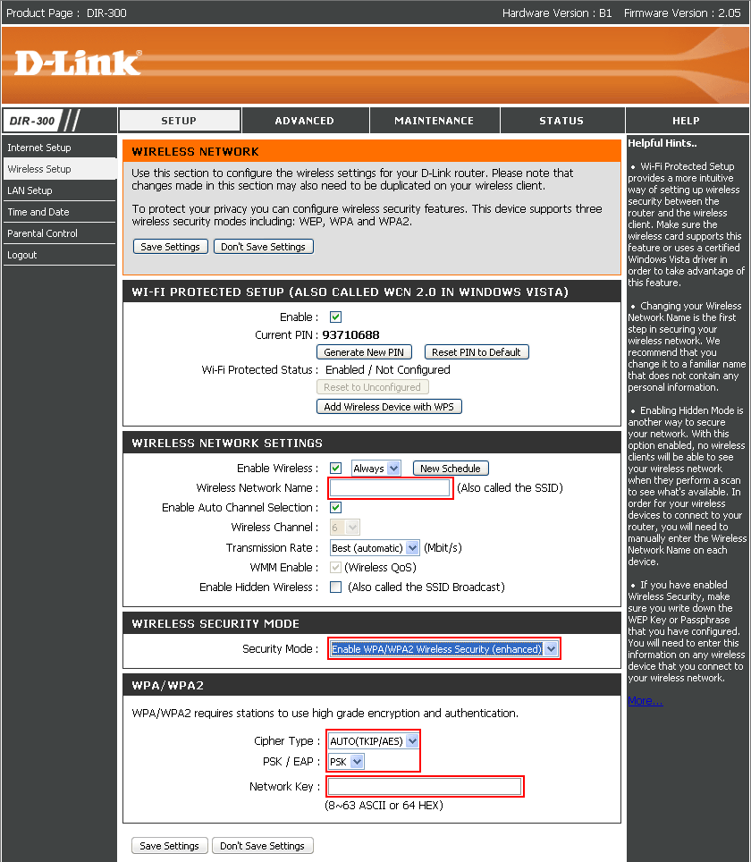 Настройка Wi-Fi c шифрованием данных в роутере DIR-300